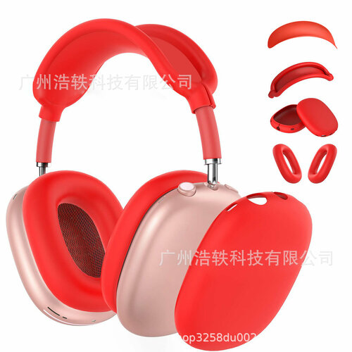 Чехол для наушников, для Apple Airpods Max, силиконовый, прозрачный, красный, комплект из 3 частей