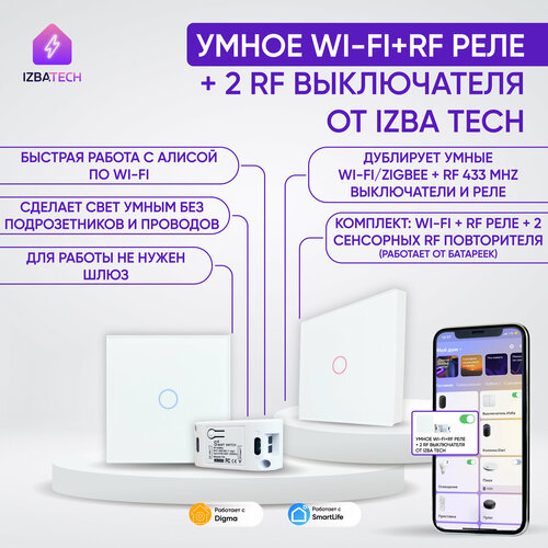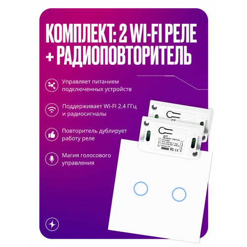 Умное Wi-Fi+RF реле на 1 канал в комплекте с кинетическим повторителем, умный дом