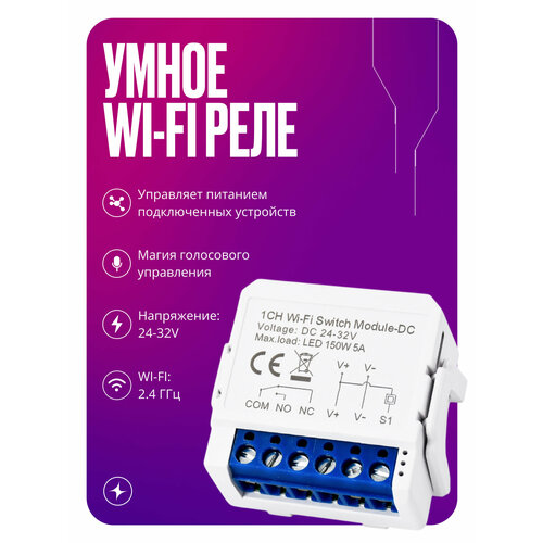 Умное реле WIFI, контроллер на 1 канал, 24-32В, умный дом