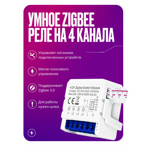 Умное реле Zigbee 3.0, контроллер на 4 канала, с нулем для умного дома