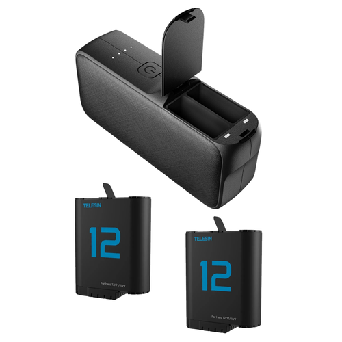 Зарядное устройство с функцией Powerbank и 2 АКБ Telesin для GoPro Hero 12/11/10/9