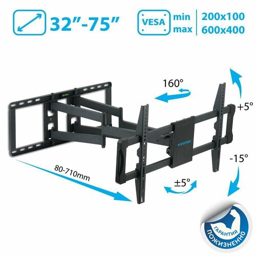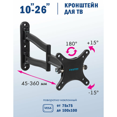 Наклонно-поворотный кронштейн для телевизора Kromax CASPER-202 20-43 черный