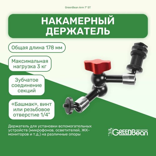 Накамерный держатель GreenBean Arm 7" ST для осветителей, мониторов, микрофонов и т. д. на горячий башмак для видео и фото съемок