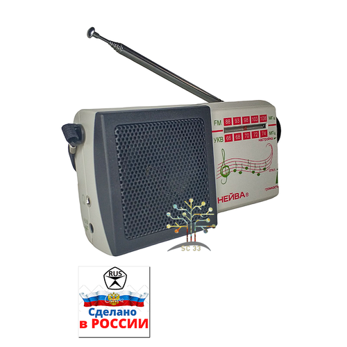 Приемник радиовещательный «Нейва РП-216» чёрный динамик FM/УКВ диапазоны серый в комплекте с алкалиновыми батарейками