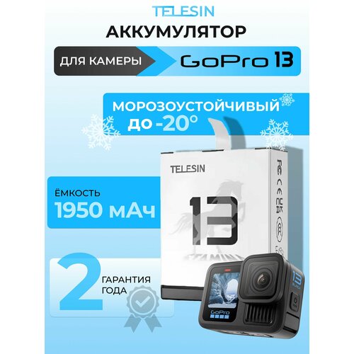 Усиленный аккумулятор для GoPro 13 морозостойкая батарея Telesin 1950 mAh АКБ
