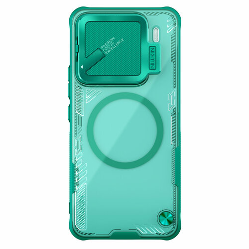Чехол зеленого цвета от Nillkin с металлической откидной крышкой и поддержкой MagSafe на Xiaomi 15, серия Iceblade Prop Magnetic Case