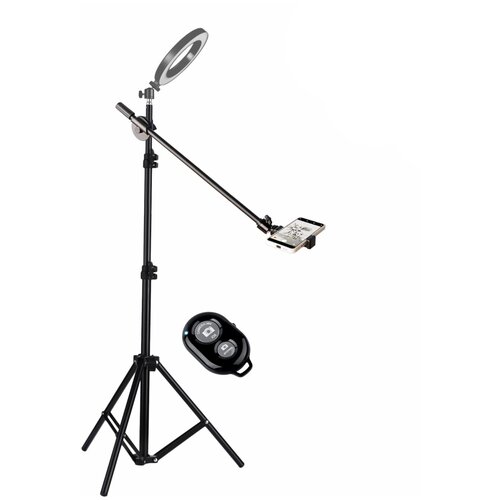 Напольная стойка для кольцевой лампы LS-G17-В на усиленном штативе (LS8806) для съемки сверху с держателем для телефона и кнопкой Bluetooth