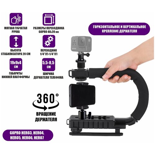 Ручной стабилизатор для камеры телефона, ручка-держатель для GoPro с фиксирующим винтом и гайкой