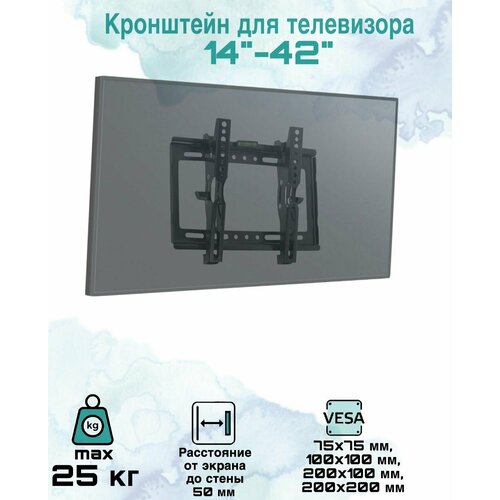 Кронштейн для телевизора настенный для телевизоров/мониторов от 14" до 42" с грузоподъёмностью до 25 кг