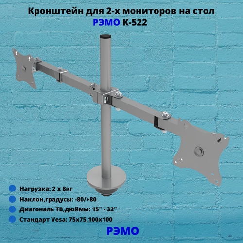 Кронштейн для двух мониторов на стол наклонно-поворотный с диагональю 15"-32" Рэмо К-522