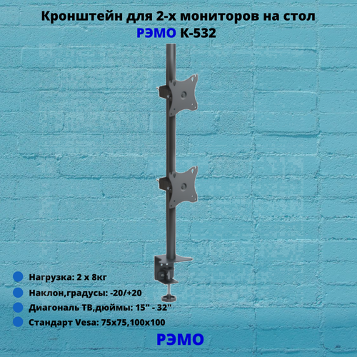 Кронштейн "РЭМО" К512, для монитора, 10"-32", 2 монитора до 16 кг