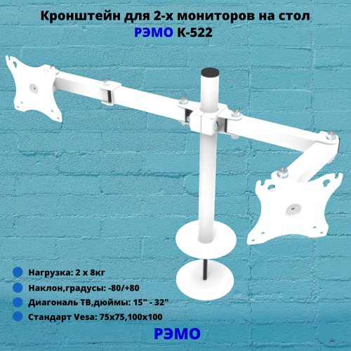 Кронштейн для двух мониторов на стол наклонно-поворотный с диагональю 15"-32" Рэмо К-522