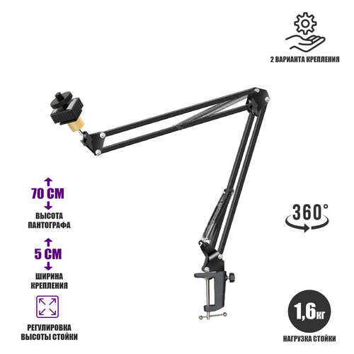 Настольная стойка пантограф ST-34A с усиленной струбциной для камеры весом до 1.6 кг черный
