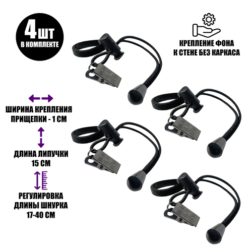 Крепление прищепка на резинке с фиксатором для фотофона, металл, 4 шт