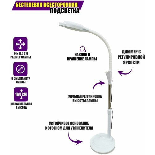 Лампа лупа Светодиодная, Напольная, С регулировкой яркости, с регулировкой высоты и наклона