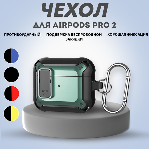 Чехол для AirPods Pro 2 / Противоударный защитный чехол-бампер с кнопкой Mecha для Аирподс Про 2 , Цвет: Зеленый