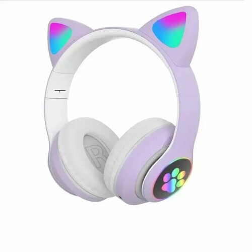 Наушники беспроводные с ушками кошки светящиеся, черные
