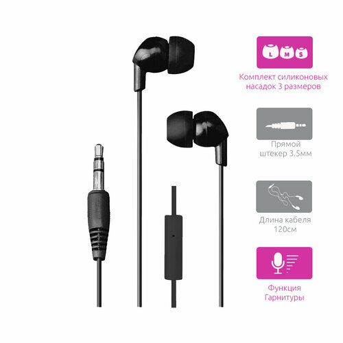 Наушники внутриканальные с микрофоном, черные, OLMIO