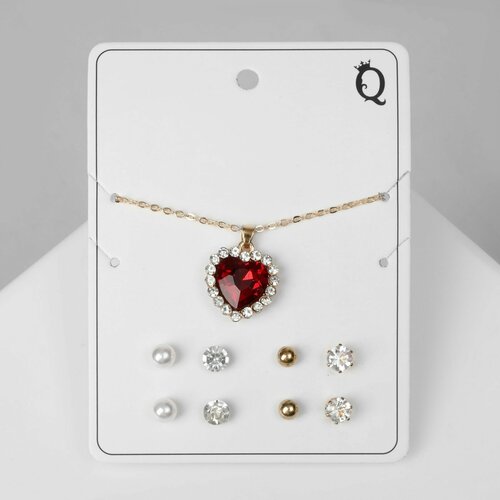 Гарнитур 5 предметов: 4 пары пусет, кулон "Сердечко", цвет бело-красный в золоте, 45см