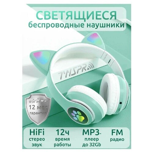 Детские беспроводные наушники с ушками кошки TWS Pro STN-28/ Светящиеся беспроводные наушники для телефона