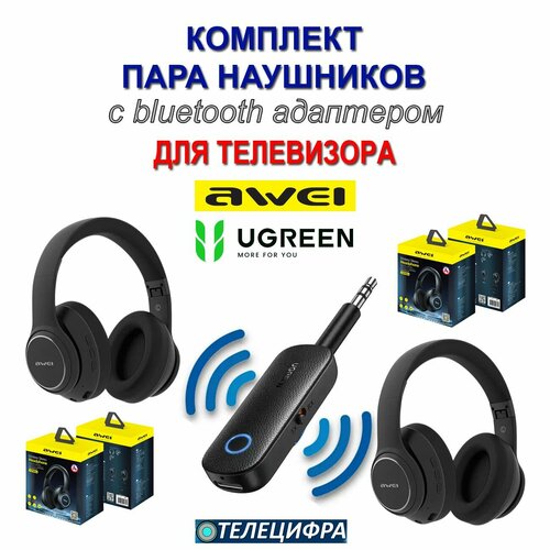 Комплект: пара наушников с bluetooth адаптером для телевизора. Наушники беспроводные накладные с мягким оголовьем и Bluetooth адаптером для подключения к телевизору. Bluetooth наушники для телевизора.