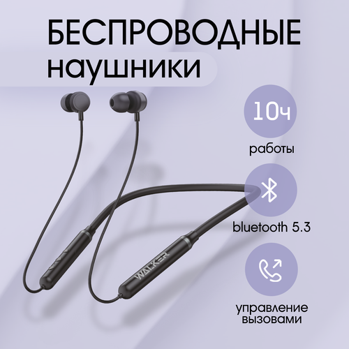 Наушники беспроводные Bluetooth 5.3, WALKER, WBT-25, с микрофоном и управлением громкости, для спорта, игровая гарнитура для телефона, черные