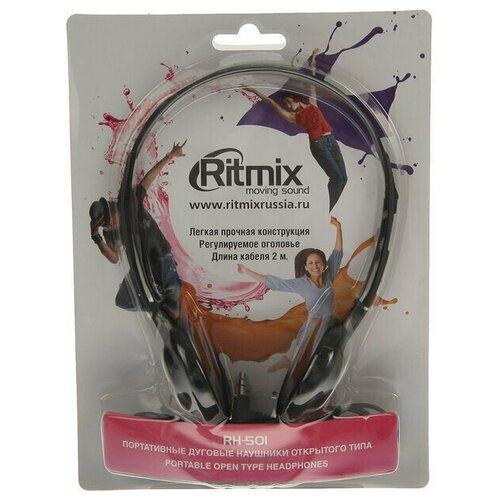 Наушники Ritmix RH-501, накладные, 105 дБ, 16 Ом, 3.5 мм, 2 м, черные