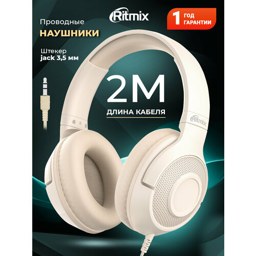 Наушники RITMIX RH-544 Beige, закрытого типа, 32 Ом, 100мВт, 2 м
