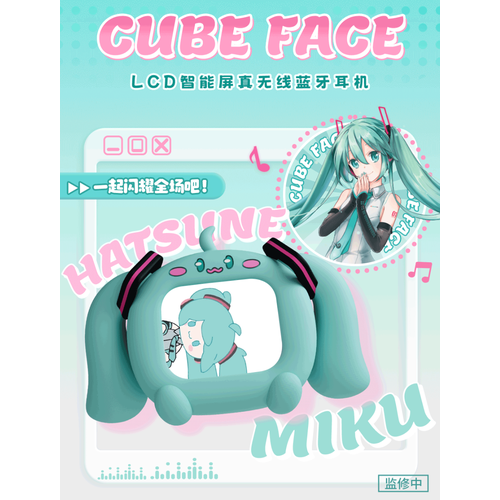 Беспроводные наушники BiliBiliGoods Hatsune Miku Cube Face, бирюзовый