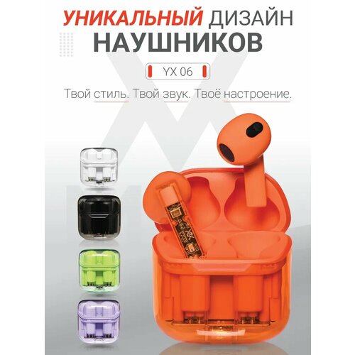 Беспроводные наушники YX06 - Сенсорные Bluetooth наушники для смартфона с подсветкой, прозрачным зарядным кейсом оранжевый