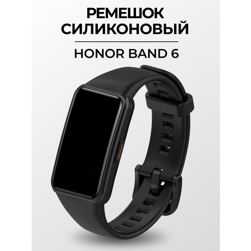 Силиконовый ремешок для Honor Band 6 / Huawei Band 6 / Спортивный браслет с застежкой на часы / Черный