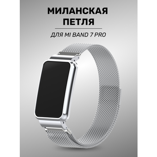 Металлический ремешок для Xiaomi Mi Band 7 Pro / Браслет Миланская петля на Ми Бэнд 7 Про, Серебристый