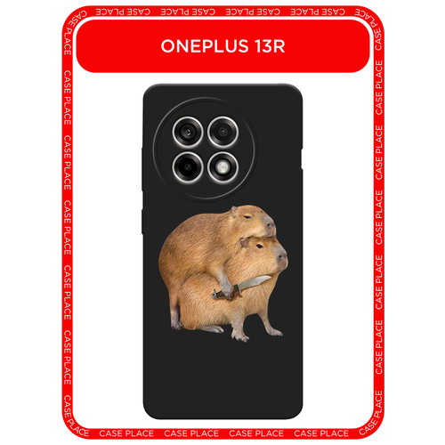 Черный матовый чехол на Oneplus 13R/Ace 5/5 Pro / Ван Плас 13R/Асе 5/5 Про с принтом Капибара с ножом