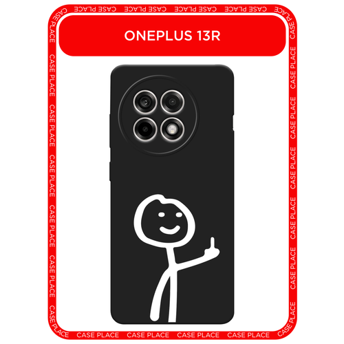 Черный матовый чехол на Oneplus 13R/Ace 5/5 Pro / Ван Плас 13R/Асе 5/5 Про с принтом Неприличный человечек белый