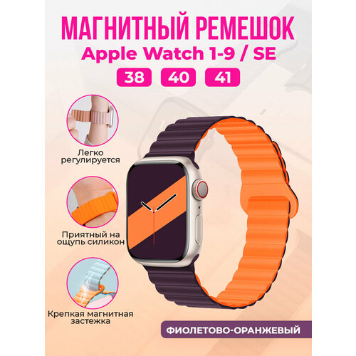 Магнитный силиконовый ремешок для Apple Watch 1-9 / SE / SE 3 (38/40/41 мм), 11, S10/S11, 42 мм, фиолетово-оранжевый