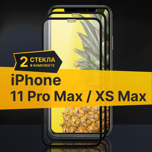 Комплект 2 шт. Противоударное защитное стекло для телефона Apple iPhone XS Max и 11 Pro Max / Полноклеевое 3D стекло с олеофобным покрытием на смартфон Эпл Айфон ХС Макс и 11 Про Макс / С черной рамкой