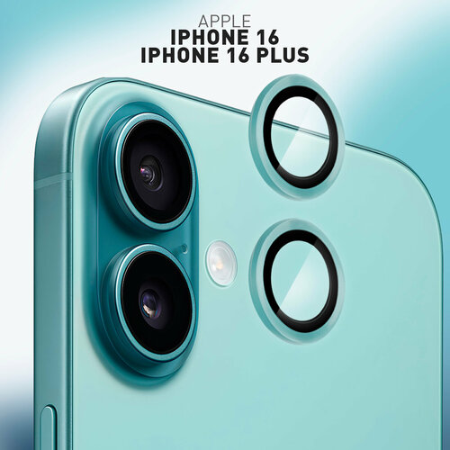 Защитные стёкла на камеры для Apple iPhone 16 и 16 Plus (Айфон 16 и 16 Плюс), чёрная рамка, бренд Rosco, 1 комплект