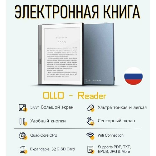 OLLO Reader - Стильная и элегантная электронная книга с топовым экраном OED 5,83 "ESL" с русским языком. С картой на 32 Gb