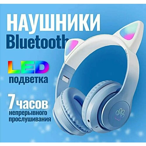 Беспроводные блютуз Наушники PRO, Детские наушники, блютуз гарнитура, Наушники с подсветкой, накладные со светящимися ушками, синий