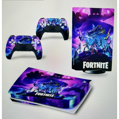 Наклейка виниловая защитная на игровую консоль Sony PlayStation 5 Fat Disc Edition, Fortnite, полный комплект с геймпадами