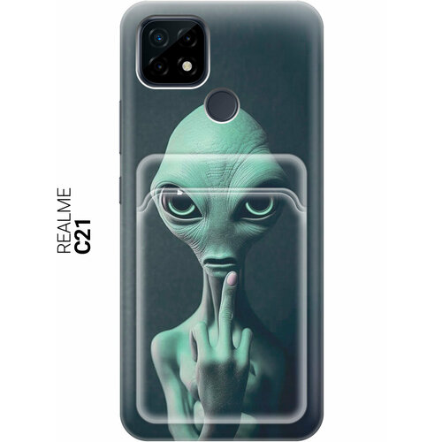 Силиконовый чехол на realme C21 / Рилми С21 с рисунком "Инопланетный фак" и карманом для карт