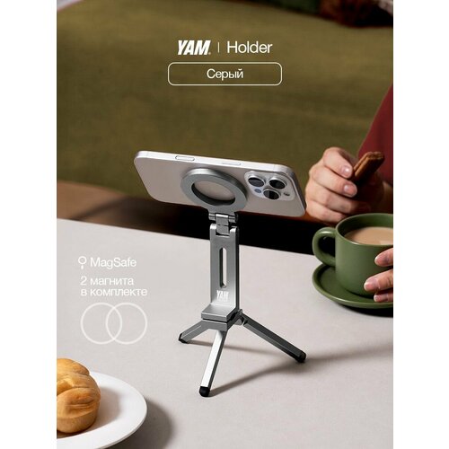 Магнитный держатель для телефона Yamcase, на магните, с балансирующим механизмом, серый/серебряный