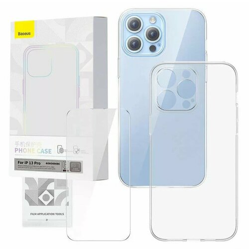 Чехол Baseus Накладка силиконовая Baseus P60112201201-01 Corning Series для iPhone 13 Pro прозрачная + защитное стекло 2 шт. в комплекте