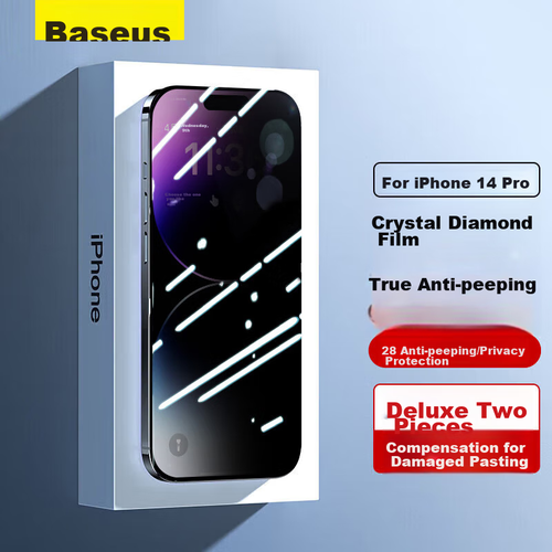 Baseus Privacy Screen Protector for IPhone 14 Pro, Anti-Glare Tempered Glass Film, Shatterproof, Anti-Fingerprint, HD Clear, Full Coverage, 28° Privacy Protection, 2-Pack