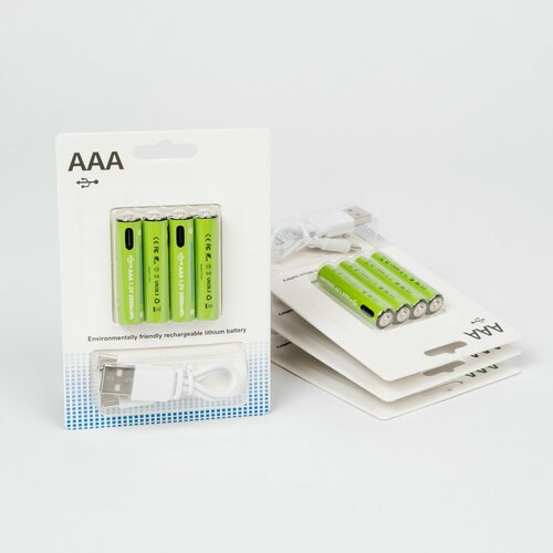 Перезаряжаемые аккумуляторы 4шт. ААА Литий-ионные, емкость 750 mWh Батарейки зарядка от USB Type-C - Li-Ion мизинчиковые