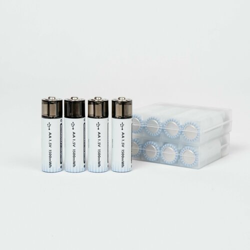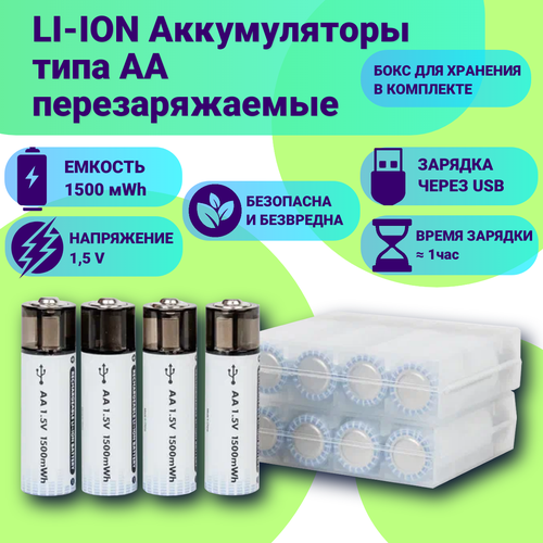 Перезаряжаемые аккумуляторы 4шт. АА Литий-ионные, емкость 1500 mWh Батарейки зарядка от USB Li-Ion пальчиковые