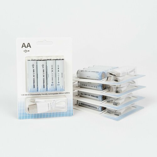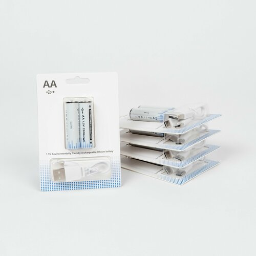 Цены на Перезаряжаемые аккумуляторы 2шт. АА Литий-ионные, емкость 2200 mWh Батарейки зарядка от USB Type-C - Li-Ion пальчиковые белый в г. Пермь