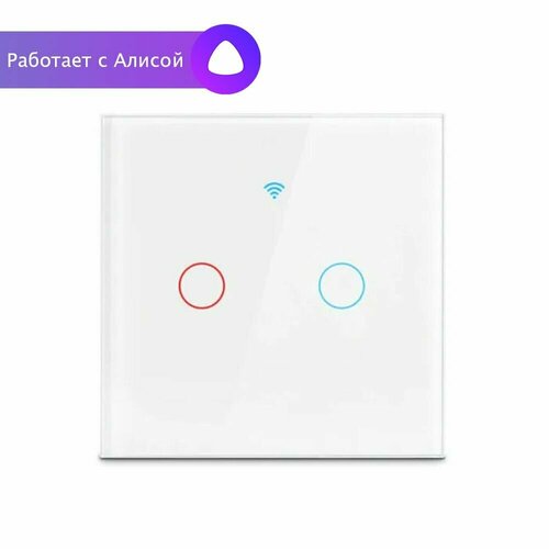 Умный выключатель WiFi Tuya сенсорный двухклавишный, для умного дома, голосовое управление работает с Яндекс Алисой