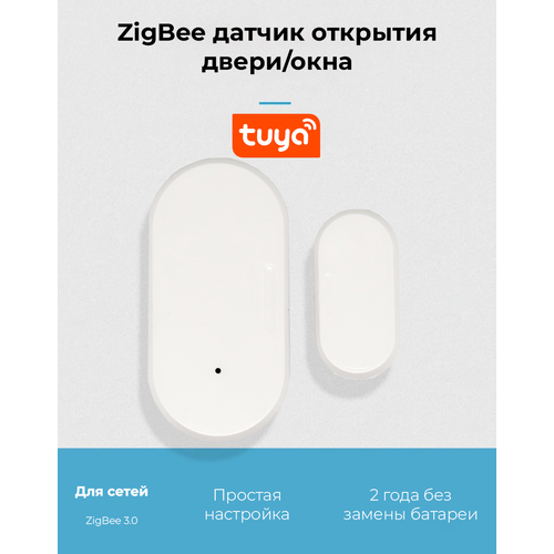 Датчик открытия Tuya Door Magnetic Sensor, ZigBee 3.0, питание CR2032, белый