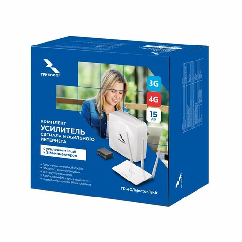 Усилитель сигнала мобильного интернета Триколор (15 дБ и SIM-инжектор), TR-4G/injector-15kit